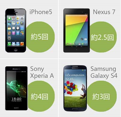 ほとんどのスマートフォンへ6回以上のフル充電、