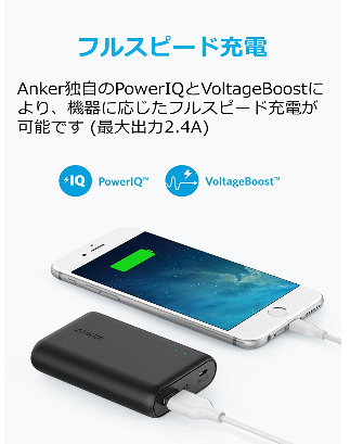 Anker独自技術PowerIQとVoltageBoostによりフルスピード充電が可能です。(最大2.4A)